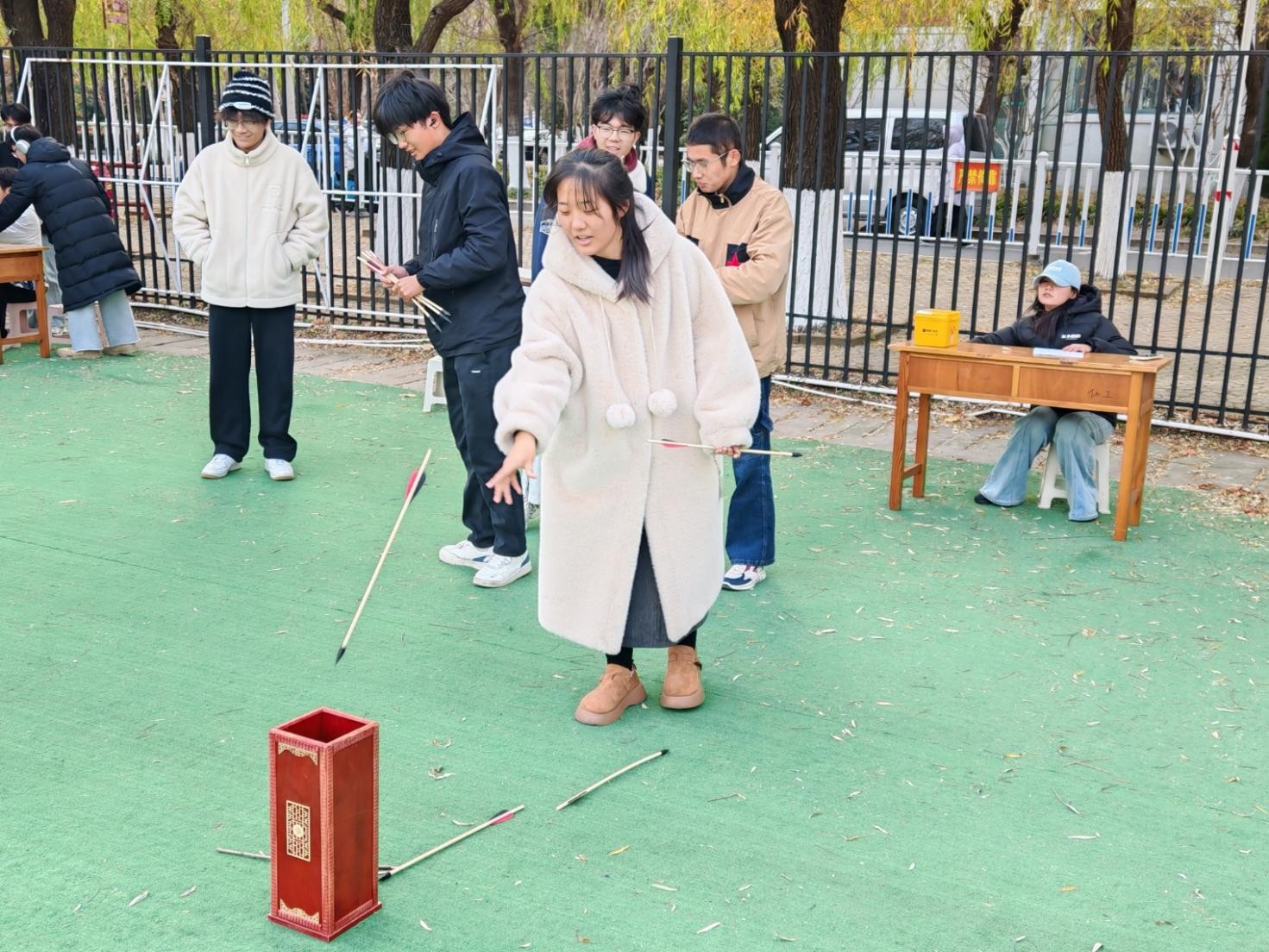 活动前期,学院通过新媒体平台广泛宣传,学院体育部与学生会志愿者通力协作,细致的解答与引导成功点燃了大家的参与热情。比赛设置了个人跳绳、趣味障碍赛、投壶和扔沙包等多项内容,既有竞技性又不失趣味性,既考验个人能力又增进同学交流。现场气氛热烈,参赛选手精神饱满,观众加油声此起彼伏,志愿者服务细致周到,整个操场洋溢着青春的热情与活力。