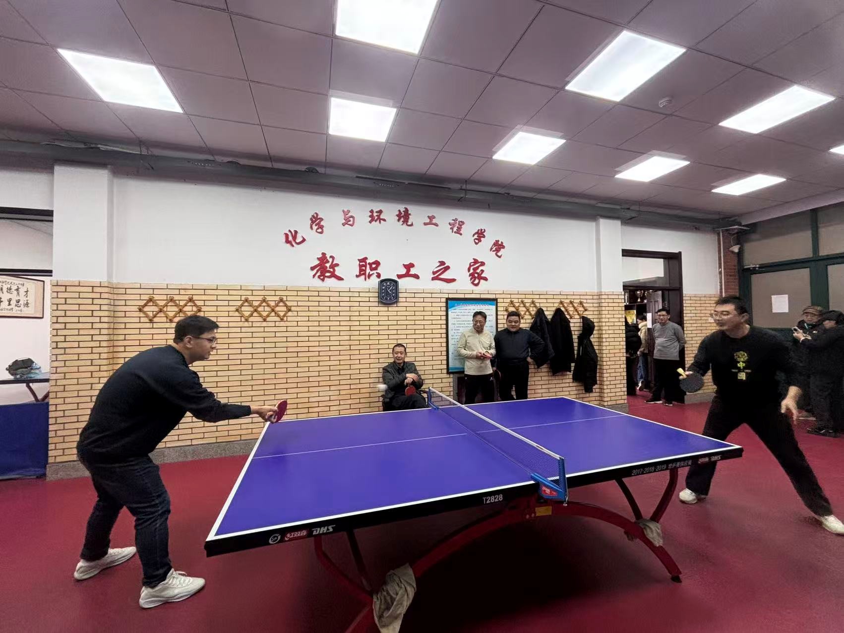 工会在教工之家举办2025年教职工乒乓球比赛。比赛以“爱‘乒’才会赢,你来你也行;‘乒’出你风采,展现化院情”为主题,吸引了学院机关、应化系、生工系、化工系和实验中心五支队伍踊跃参与。