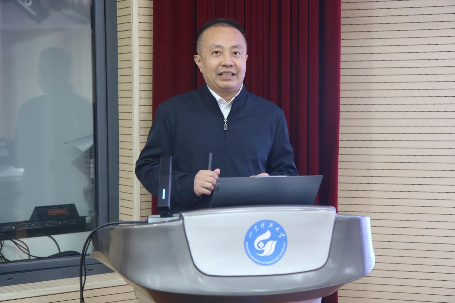 承办的山东科技大学“嵙汇”学科交叉融合首期论坛在图书信息中心尚德讲堂举行。本期论坛以“绿色能源·迈向SOC规模化零碳时代”为主题,聚焦固体氧化物燃料电池(SOC)技术、关键材料、零碳能源系统及工程应用,汇聚校内外多学科专家学者,共话学科交叉与能源转型。校党委常委、副校长薛庆忠出席并主持论坛。学院党委书记窦存增、院长梁鹏及师生代表参加。