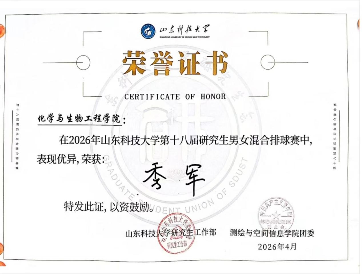 4月2日,山东科技大学第十八届研究生男女混合排球赛在风雨操场圆满结束,色情直播 研究生排球队凭借顽强斗志与默契配合一路奋勇拼搏,最终斩获季军。赛场上我院队员精神抖擞、配合默契,发球精准、扣杀有力、拦网稳固。场边师生拉拉队助威不断,呐喊声此起彼伏,尽显全院上下凝心聚力的浓厚氛围。此次比赛不仅为学子搭建了切磋交流的平台,更增强了学院凝聚力。学院也将以此次赛事为契机,持续推动文体活动与科研学习深度融合,激励全院学子以更饱满的热情、更昂扬的姿态投身学习科研,在逐梦路上奋勇争先。