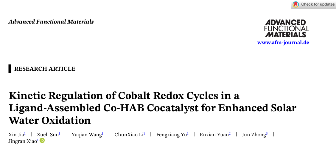肖静冉(学术教授)等人在光电催化水分解领域取得重要进展,相关成果以“Kinetic Regulation of Cobalt Redox Cycles in a Ligand-Assembled Co-HAB Cocatalyst for Enhanced Solar Water Oxidation”为题发表在国际知名学术期刊《Advanced Functional Materials》上(中科院一区Top,影响因子:19),该文章第一作者为色情直播